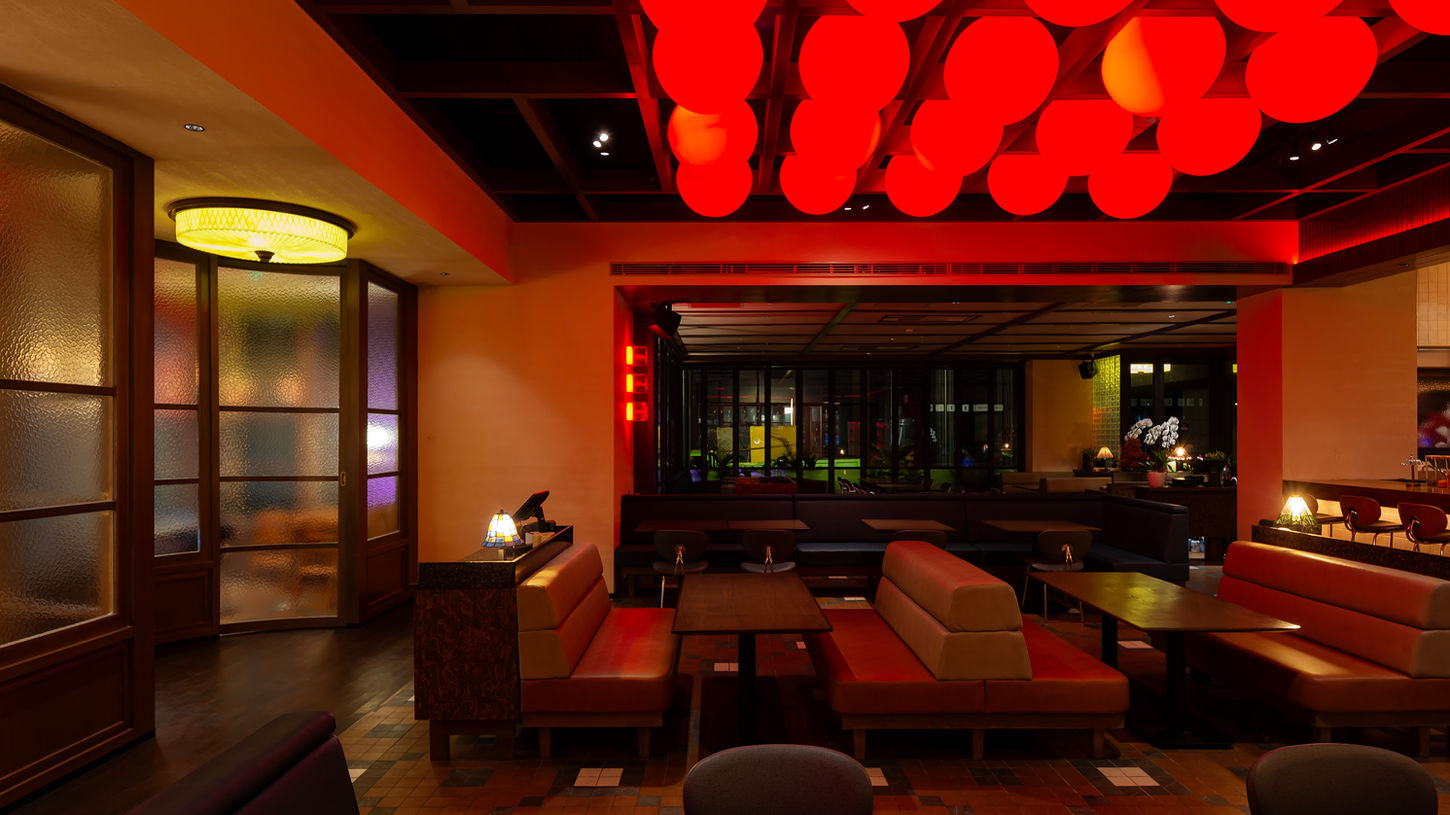 Subtle beauty in every detail. Ryota embraces modern Japanese aesthetics—calm, refined, and understated. A moody yet inviting space, shaped by warm wood, red tiles, and black iron elements. The ambience shifts gently from day to night, with lighting that transforms the atmosphere into an intimate dining experience.